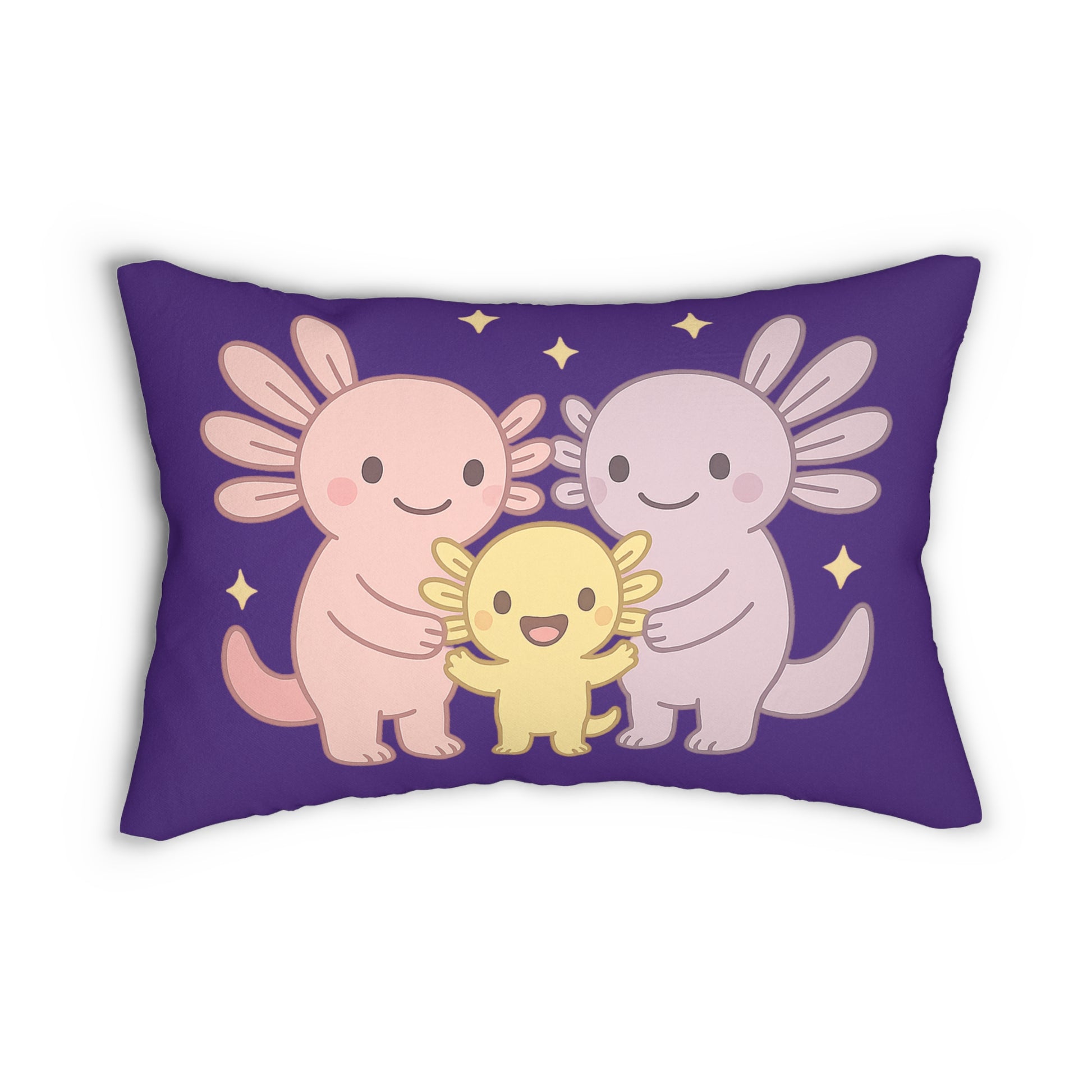 Transform your living space with this charming Lumbar Pillow featuring adorable axolotls in a whimsical design. With its vibrant colors and playful illustrations, this pillow adds a joyful touch to any room. Whether it's placed on your couch, bed, or favorite reading chair, it creates a warm and inviting atmosphere. Perfect for anyone who loves cute decor, this pillow is an ideal gift for kids, animal lovers, or anyone looking to brighten their home. Great for holidays like birthdays, or simply as a thoughtful surprise to celebrate a loved one.